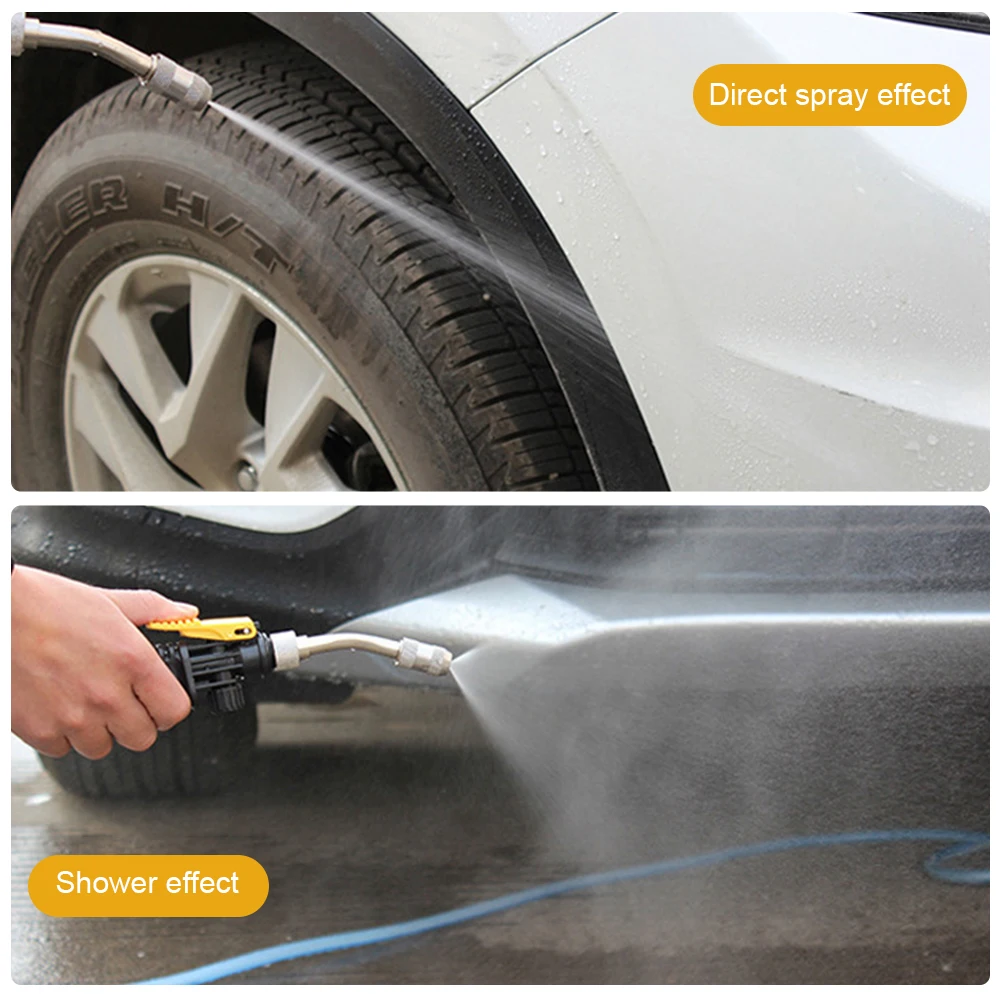 3. Adjustable Spray: The electric spray nozzle has an all-metal knob that allows you to adjust the spout for a variety of scenarios, including watering flowers, washing floors, and washing cars. This design adds to the flexibility and practicality of the product.