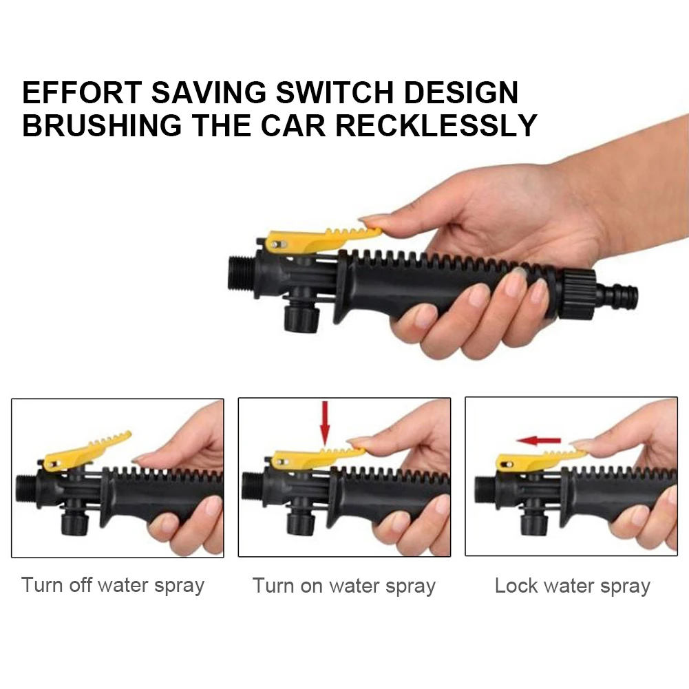 1. Victory Switch Design: This car washer nozzle has a victory switch design at the handle, which is simple to operate and use. This design facilitates the user to turn the nozzle on and off and increases the efficiency of use.